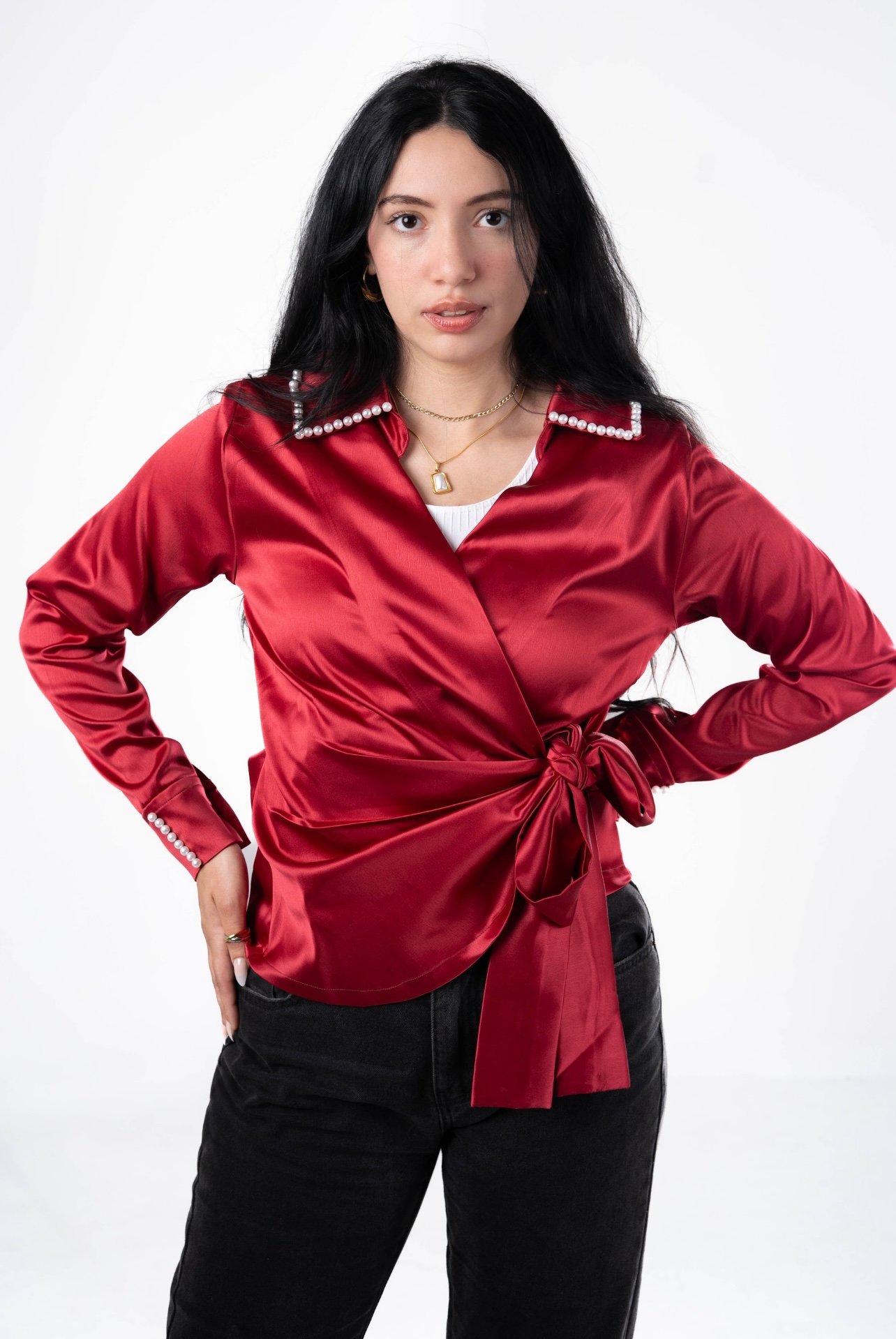 Elevate your everyday look with our satin blouse crafted from smooth, luminous satin fabric. Designed for a soft, comfortable feel against the skin, it moves effortlessly with a graceful drape that flatters the silhouette. The subtle sheen adds a refined, feminine touch—perfect to style from day to night, all year round.