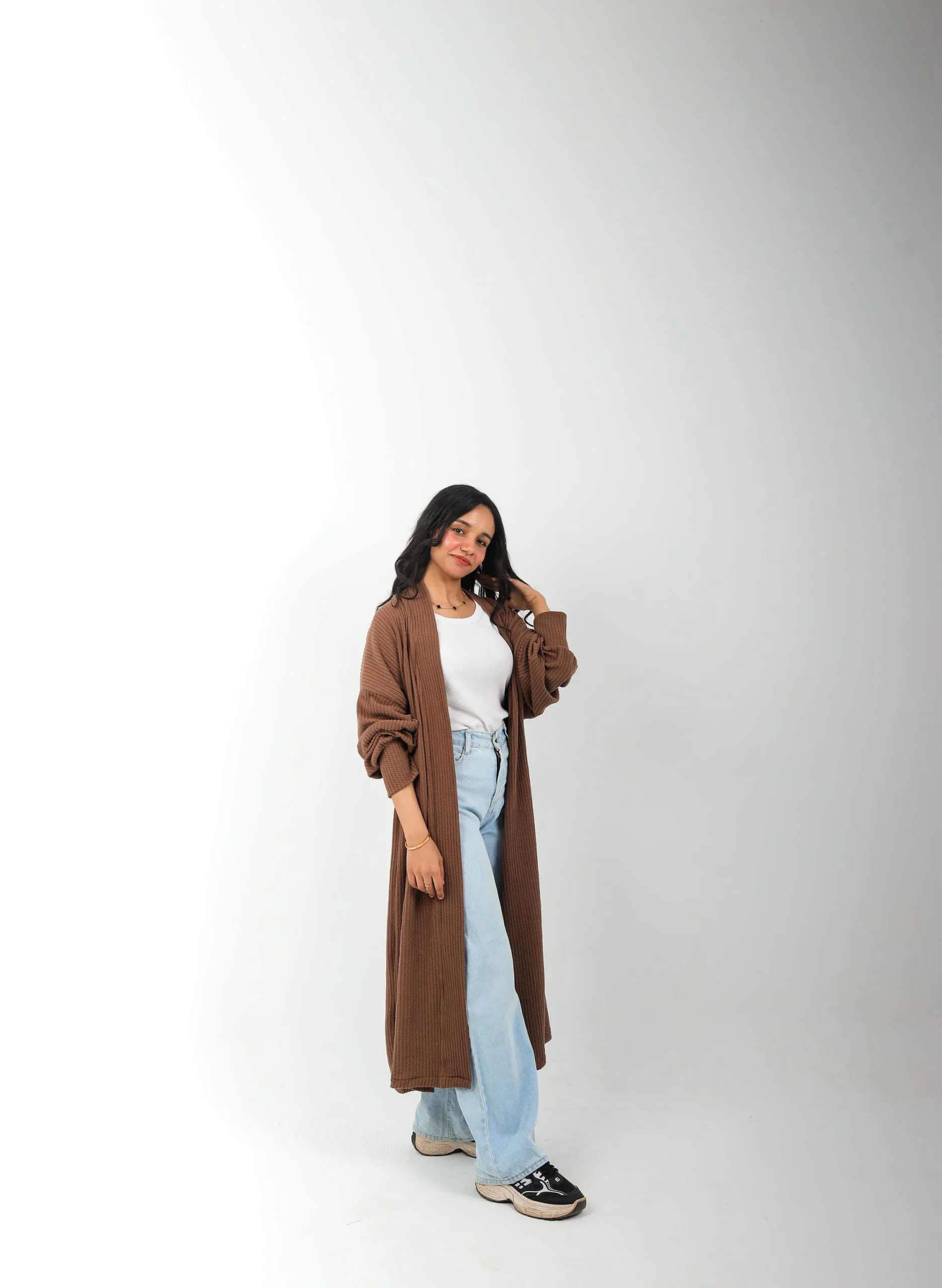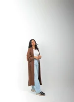 Wrap yourself in effortless elegance with this cozy knitted cardigan made with Treco fabric— the perfect blend of comfort and style. Designed with a soft, breathable fabric, it keeps you warm without feeling heavy. The relaxed fit and open front make it easy to layer over your favorite tops, while the fine stitching and subtle details add a refined touch. Whether paired with jeans for a casual day out or layered over a dress for a chic evening look, this cardigan is your go-to piece for timeless comfort and modern sophistication.